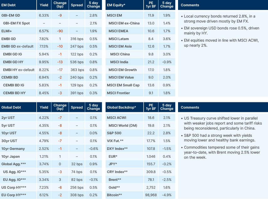 - EM had good performance last week as tariff threats receded (except for Colombia)